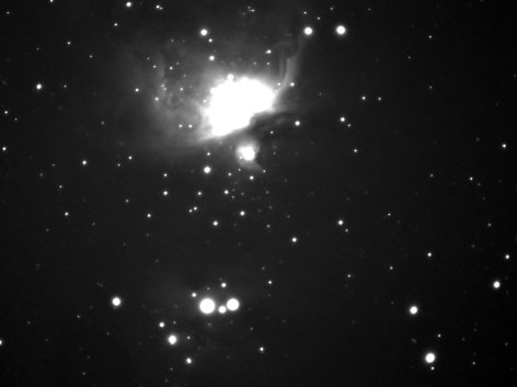 Am 23.03. wird zunächst einmal M42/M43 (Sternbild: Orion) angepeilt. Belichtungszeit: 10 Minuten. Ohne Filter. Im unteren Bereich des Bildes sind schwach die Nebel NGC 1977, NGC 1973 und NGC 1975 zu erkennen.
