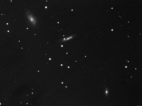 Auf dem folgenden Bild (im Sternbild: Leo minor, vom 27.03.03) können gleich drei größere Galaxien erkannt werden: NGC 3430, NGC 3424 und NGC 3413 (von oben nach unten). Das Bild wurde 30 Minuten lang belichtet und zeigt bereits sehr feine Strukturen der Galaxien. Brennweite: C11 mit Fokal-Reducer: 1.75 Meter.