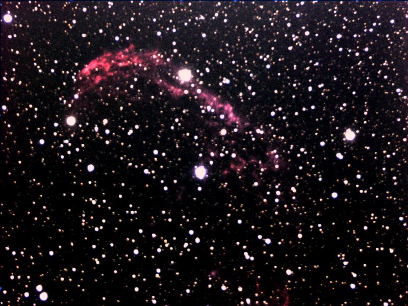 Das obige Bild ist der erste Versuch, das SBIG-Filterrad zweckentsprechend einzusetzen. Das LRGB-Bild vom NGC 6888 entstand am 28.05.2003. Bei diesem Bild hat es aber ein Problem beim Hintergrund gegeben. Deutlich ist der Helligkeitsgradient von oben nach unten zu erkennen. Wahrscheinlich sind die Flat-Frames nicht korrekt aufgenommen worden.