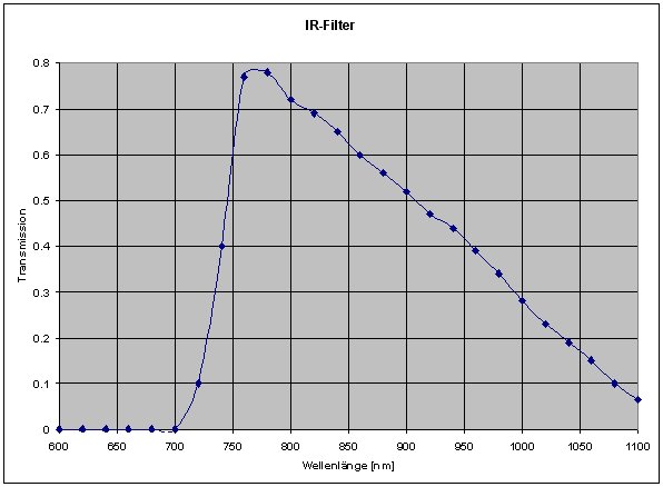 Vor langer Zeit haben wir einen Filter bestellt, der nur das nahe Infrarot-Licht durchlässt. Die Filterkurve ist in der folgenden Abbildung zu sehen: