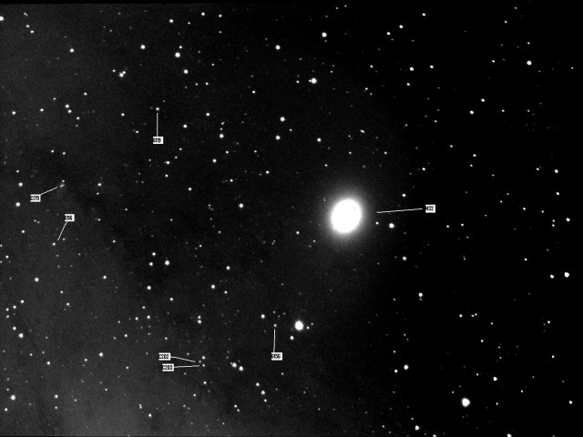 In diesem Bild von M 32 sind einige spezielle Objekte des
