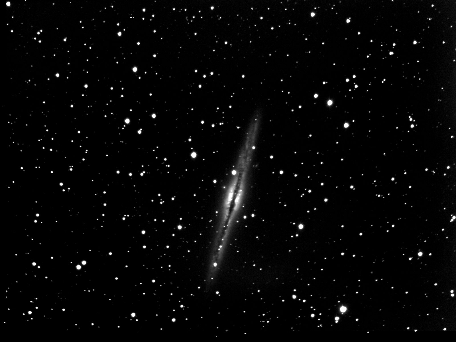 NGC 891, Belichtungszeit: 155 min (31 x 5 min), mit AO-7, vom