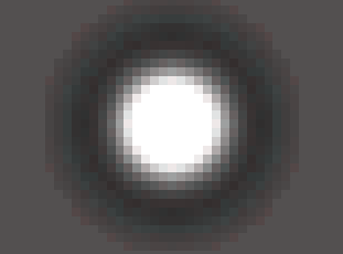 Wie man jedoch in Abb. 10 auch klar sehen kann, ist der Durchmesser des Sterns in halber Höhe immer noch unverändert. D.h., dieses Verfahren ist nur beschränkt tauglich. Die früheren unscharfen Hubble-Bilder kann man mit diesem Verfahren nicht "scharf rechnen". Weiterhin müssen wir noch eine andere unangenehme Sache berücksichtigen. Nehmen wir einen Stern, der vor dem Hintergrund eines Nebels steht. D.h., der Stern steht nicht vor absolut schwarzem Hintergrund, sondern vor einem mehr oder weniger hellen Hintergrund. Nun wird bei unserem Algorithmus die Intensität rund um das Maximum der Gauss-Funktion auf die Mitte dieser Funktion addiert. Leider entsteht dann rund um den Stern ein hässlicher dunkler Ring (vor allen Dingen dort, wo die negativen Pixelwerte nach der Vektor- bzw. Matrix-Multiplikation auftraten (siehe oben). Steht der Stern nun vor dem helleren Hintergrund eines Nebels oder einer Galaxie, so ist dieser Effekt noch deutlicher zu sehen (Abb. 11).