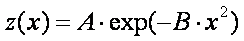 Man erkennt eigentlich sofort, dass die Konstante A die maximalen Höhe der Gauss-Funktion angibt. Bei der Konstanten B erkennt man den Zusammenhang jedoch nicht sofort. Es sieht aber so aus, als ob B irgendwie eine Kombination aus der Breite und der maximalen Höhe der Gauss-Funktion darstellt. In Gleichung 1 ist das Maximum der Gauss-Funktion auch immer bei "0" auf der X-Achse. Darum gibt es in der Mathematik eine etwas andere Darstellung dieser Funktion (Gleichung 2):