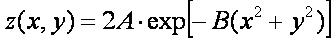 Um das 2-dimensionale Abbild eines Sterns mathematisch darzustellen, muss man nur noch zwei Gauss-Funktionen in X- und Y-Richtung durch Multiplikation überlagern (Abb. 6 und Gleichung 3). Die Konstanten A und B sind für beide Gauss-Funktionen gleich.