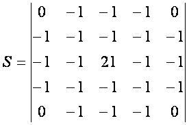 In Gleichung 10 wird eine Schärfungs-Matrix der Größe N = 5 gezeigt.