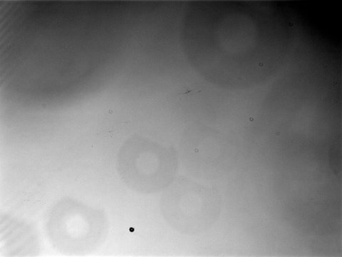 Grundsätzlich kann man folgendes Verhalten feststellen: Je näher das Schutzteilchen am CCD-Chip ist, desto kleiner ist der erzeugte Ring und desto stärker ist die Lichtabsorption in diesem Bereich. Eine Verunreinigung, die weiter vom CCD_Chip entfernt ist, erzeugt nut eine schwache Verdunkelung und einen sehr großen Ring. Diese Effekte kann man an dem obigen Flat-Bild sehr gut sehen.