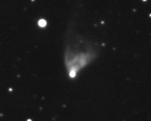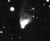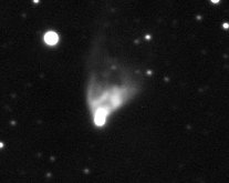 Hier wurden 10 Einzelbilder mit "Track & Accumulate" zum Gesamtbild addiert. Nun wollen wir uns noch "Hubble's Variable Nebula" (NGC2261) vornehmen. Das Ergebnis ist in drei unterschiedlich bearbeiteten Bildern zu sehen. Von links nach rechts wird das Bild jeweils etwas stärker in der Helligkeit und im Kontrast. So kann man die unterschiedlichen Strukturen im Nebel gut sehen: