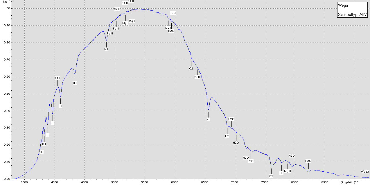 Spektrum der Wega (Nr. 1). Viele der markierten