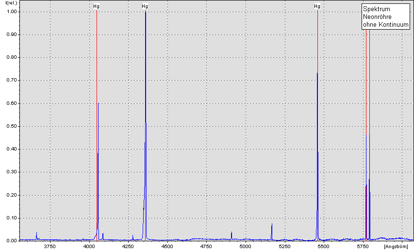 Das obige Bild zeigt des Spektrum der Neonröhre mit dem Kontinuum.