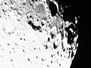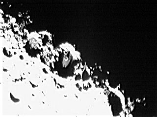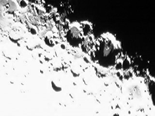 Als erstes Astroobjekt habe ich mir den Mond ausgesucht. Hier hat man exterm kurze Belichtungszeiten und muss auch keine Dunkelbilder machen. Also ein einfaches Szenario und zum ersten Ausprobieren sehr gut geeignet. Nun wird USB-Anschluss der WebCam in den Computer gesteckt, die Bildsoftware gestartet und das erste Bild gemacht. Natürlich ist zunächst einmal alles ziemlich unscharf - aber dafür gibt es ja an jedem Teleskop eine Stellschraube. Nach dem Scharfstellen habe ich dann folgende Bilder vom Halbmond gemacht (Abb. 2 - 7):