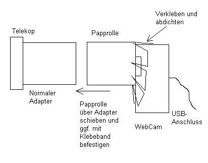 Einerseits war es die Langeweile, die mich zu dieser Aktion trieb, andererseits haben mich schon viele Leute nach einem billigen Einstieg in die Digital-Astrofotografie gefragt - und billiger geht es wohl kaum.